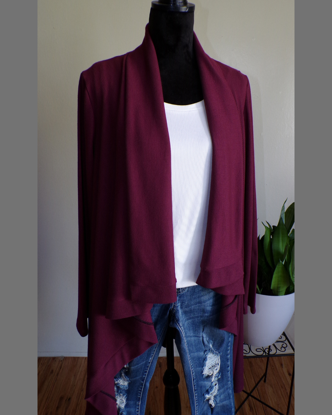 Our mini waffle knit cardigan is the layering piece you’ll reach for every season. Soft, textured, and effortlessly flattering, it adds the perfect touch of warmth in rich burgundy. Dress it up or down—this cardigan is your new go-to. ❤️